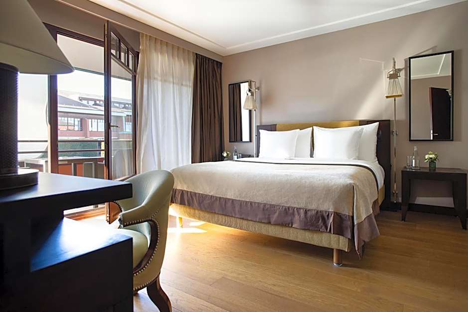 These suites enjoy a view over the lake from the living room, and also the bedroom. They offer direct access to the garden or a large private terrace. The living room is spacious and has a convertible sofa. The bedroom has a king-size bed. The bathroom has a separate bathtub and shower, and there is also a guest toilet.